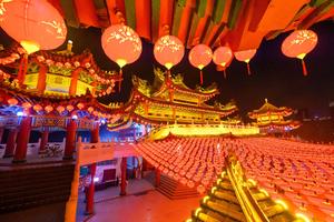 (260207) -- KUALA LUMPUR, 7 febrero, 2026 (Xinhua) -- Decoraciones festivas son vistas en el templo Thean Hou, en Kuala Lumpur, Malasia, el 7 de febrero de 2026. Una serie de celebraciones se han llevado a cabo para conmemorar el próximo Año Nuevo chino, o Fiesta de la Primavera. (Xinhua/Chong Voon Chung) (oa) (da)