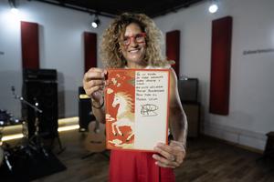 (260209) -- BUENOS AIRES, 9 febrero, 2026 (Xinhua) -- Imagen del 6 de febrero de 2026 de la cantautora uruguaya Ana Prada mostrando una tarjeta con motivos del Año Nuevo chino durante una entrevista con la Agencia de Noticias Xinhua, en la ciudad de Buenos Aires, capital de Argentina. Pasadas las 22:00 hora local del 3 de febrero, la reconocida cantautora uruguaya y referente de la canción rioplatense Ana Prada recibía una llamada inesperada del presidente uruguayo, Yamandú Orsi, en el marco de su visita de Estado a China. El motivo tenía una carga especial: una joven estudiante china de español había interpretado, ante los ojos del mandatario, la canción "Tu vestido" de Prada, una escena donde la música actuó como puente y evidenció la cercanía cultural que crece entre ambos países. (Xinhua/Martín Zabala) (mz) (oa) (ah) (vf)