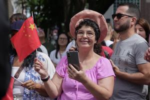(260209) -- SAO PAULO, 9 febrero, 2026 (Xinhua) -- Imagen del 8 de febrero de 2026 de una mujer observando las presentaciones durante una celebración del Año Nuevo chino en la Avenida Paulista, en Sao Paulo, Brasil. (Xinhua/Paulo Lopes) (pl) (rtg) (ah) (vf)