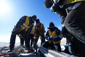 (260208) -- GOLMUD, 8 febrero, 2026 (Xinhua) -- Imagen del 6 de febrero de 2026 de empleados del taller de mantenimiento de la Línea de Wangkun en la sección de Golmud de China Railway Qinghai-Xizang Group Co., Ltd. realizando el mantenimiento de la vía a lo largo del Ferrocarril Qinghai-Xizang, en la provincia de Qinghai, en el noroeste de China. En lo profundo de las montañas Kunlun, los mecánicos de los talleres ferroviarios han intensificado el patrullaje en lugares clave a lo largo de las líneas ferroviarias, salvaguardando el buen funcionamiento del ferrocarril durante la temporada alta de viajes del Festival de la Primavera. (Xinhua/Qi Zhiyue) (rtg) (da)