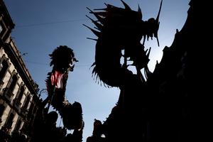 (260208) -- CIUDAD DE MÉXICO, 8 febrero, 2026 (Xinhua) -- Imagen del 7 de febrero de 2026 de personas participando en la danza del dragón, durante el 8 Concurso de Disfraces "Año del Caballo", en el marco de la celebración del Año Nuevo chino, en la Ciudad de México, capital de México. Con un ambiente festivo, familiar y lleno de color, más de 15.000 personas se congregaron el sábado en el corazón de la Ciudad de México para participar en las celebraciones del Año Nuevo chino en el país latinoamericano, que incluyeron un vistoso desfile de leones y dragones, así como un concurrido concurso de disfraces inspirado en los animales del zodiaco. (Xinhua/Daniel Augusto) (fc) (rtg) (da)