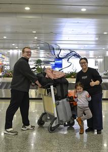 (260211) -- SHANGHAI, 11 febrero, 2026 (Xinhua) -- Una familia de Estados Unidos posan para fotografías en el Aeropuerto Internacional Pudong de Shanghai, en Shanghai, en el este de China, el 11 de febrero de 2026. A medida que se acerca el Festival de la Primavera, el puerto de Shanghai ha sido testigo de un aumento en las llegadas. (Xinhua/Chen Haoming) (ah) (ra) (vf)