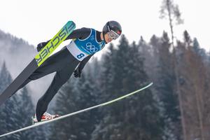 (260211) -- PREDAZZO, 11 febrero, 2026 (Xinhua) -- Zhao Jiawen, de China, compite durante el Trampolín Normal Gundersen /10 km Individual de Combinada Nórdica de los Juegos Olímpicos de Invierno Milán-Cortina 2026, en Predazzo, Italia, el 11 de febrero de 2026. (Xinhua/Huang Wei) (jg) (da) (vf)