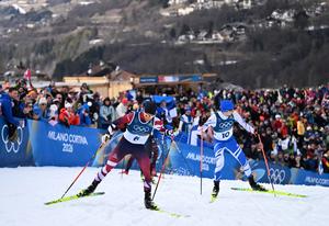(260211) -- TESERO, 11 febrero, 2026 (Xinhua) -- Atletas participan durante la competencia de Esquí de Fondo de Trampolín Normal Gundersen/10 km Individual de Combinada Nórdica en los Juegos Olímpicos de Invierno Milán-Cortina 2026, en Tesero, Italia, el 11 de febrero de 2026. (Xinhua/He Canling) (ah) (ra) (vf)