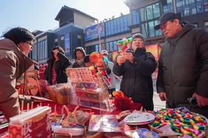 (260212) -- BEIJING, 12 febrero, 2026 (Xinhua) -- Personas seleccionan Fanlihua, un juguete tradicional hecho de papel que da vueltas, en un puesto durante una feria festiva llevada a cabo en la zona comercial de Longfusi, en el distrito de Dongcheng de Beijing, capital de China, el 12 de febrero de 2026. La feria, que se lleva a cabo en celebración de la próxima Fiesta de la Primavera ofrece diversos escenarios de consumo para ciudadanos y turistas. Durará hasta el 3 de marzo. (Xinhua/Ju Huanzong) (jg) (ah) (vf)