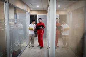 (260212) -- BUENOS AIRES, 12 febrero, 2026 (Xinhua) -- Imagen del 11 de febrero de 2026 de Leandro Vitullo (d) conversando con su colega Analía Li (i) en las oficinas de la importadora de productos chinos Chinar, en la ciudad de Buenos Aires, capital de Argentina. Cada vez son más los jóvenes argentinos que encuentran en las tradiciones de China una forma distinta de vincularse con la vida diaria, al asumir actitudes como sumarse a las festividades por el Año Nuevo chino del calendario lunar o adoptar hábitos de esa cultura en la cotidianidad. (Xinhua/Martín Zabala) (mz) (rtg) (ra)