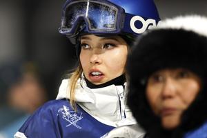 (260214) -- LIVIGNO, 14 febrero, 2026 (Xinhua) -- Gu Ailing, de China, espera la puntuación durante la clasificación de Big Air femenino de esquí acrobático en los Juegos Olímpicos de Invierno Milán-Cortina 2026, en Livigno, Italia, el 14 de febrero de 2026. (Xinhua/Wang Peng) (jg) (da)