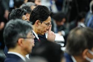 (260213) -- TOKIO, 13 febrero, 2026 (Xinhua) -- Takeshi Shina, candidato de la Alianza Reformista Centrista (CRA, por sus siglas en inglés), asiste a la elección de liderazgo de la CRA, en Tokio, Japón, el 13 de febrero de 2026. Junya Ogawa fue elegido el viernes nuevo líder de la principal fuerza de oposición de Japón, la CRA. (Xinhua/Jia Haocheng) (jg) (da) (vf)