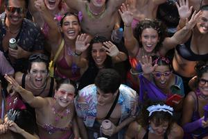 (260215) -- RIO DE JANEIRO, 15 febrero, 2026 (Xinhua) -- Juerguistas participan en un carnaval callejero en la playa Flamengo, en Río de Janeiro, Brasil, el 15 de febrero de 2026. (Xinhua/Lucio Tavora) (lt) (rtg) (ah)