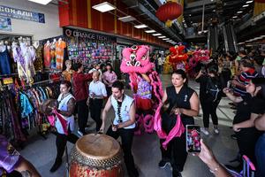 (260216) -- SANTIAGO, 16 febrero, 2026 (Xinhua) -- Personas realizan una presentación de una Danza del león durante un evento en un centro comercial chino, en el marco del Año Nuevo chino, en Santiago, capital de Chile, el 16 de febrero de 2026. Un grupo de jóvenes chilenos encabezaron el lunes la celebración previa al Año Nuevo chino con la tradicional y emblemática Danza del león, espectáculo que sorprendió a comerciantes y al público en el barrio Meiggs, núcleo de negocios de los emigrantes asiáticos en Chile. (Xinhua/Jorge Villegas) (jv) (rtg) (ah) (vf)