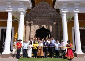 (260215) -- GRANADA, 15 febrero, 2026 (Xinhua) -- Imagen cedida por el Consejo de Comunicación y Ciudadanía de la República de Nicaragua del 12 de febrero de 2026 del cosecretario de Economía Creativa de la Presidencia, Luis Morales Alonso (5-d), y de la alcaldesa de Granada, Gladys Medina (4-d), reaccionando durante la reapertura de la Casa de los Tres Mundos, en Granada, Nicaragua. La Casa de los Tres Mundos, declarada Patrimonio Cultural de la Nación por el Gobierno de Nicaragua, fue restaurada integralmente y reabrió sus puertas al público el jueves en la ciudad colonial de Granada. (Xinhua/Consejo de Comunicación y Ciudadanía de la República de Nicaragua) (fc) (oa) (ah)