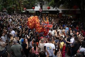 (260217) -- BUENOS AIRES, 17 febrero, 2026 (Xinhua) -- Imagen del 16 de febrero de 2026 de artistas marciales de la escuela Lung Chuan realizando una presentación de la danza del dragón durante las celebraciones por el Año Nuevo chino, en el Barrio Chino, en la ciudad de Buenos Aires, capital de Argentina. El Barrio Chino de Buenos Aires celebró el lunes la llegada del Año Nuevo chino o Fiesta de la Primavera con un multitudinario evento lleno de color y emoción que ofreció arte, cultura, música, moda, baile y gastronomía de China. (Xinhua/Martín Zabala) (mz) (oa) (ah) (vf)