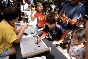 (260217) -- BUENOS AIRES, 17 febrero, 2026 (Xinhua) -- Imagen del 16 de febrero de 2026 de Juan (3-d), de 9 años de edad, practicando caligrafía china en un estand durante las celebraciones por el Año Nuevo chino, en el Barrio Chino, en la ciudad de Buenos Aires, capital de Argentina. El Barrio Chino de Buenos Aires celebró el lunes la llegada del Año Nuevo chino o Fiesta de la Primavera con un multitudinario evento lleno de color y emoción que ofreció arte, cultura, música, moda, baile y gastronomía de China. (Xinhua/Martín Zabala) (mz) (oa) (ah) (vf)