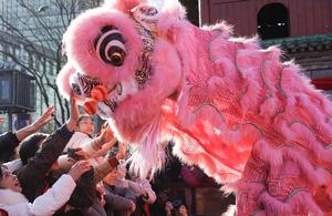 (260217) -- BEIJING, 17 febrero, 2026 (Xinhua) -- Personas interactúan con artistas de la danza del león en una feria de templo, en Beijing, capital de China, el 17 de febrero de 2026. Las ferias de templo se inauguraron aquí para celebrar la Fiesta de la Primavera y ofrecer a los visitantes bailes tradicionales, danzas del león y deliciosa comida. (Xinhua/Chen Zhonghao) (oa) (ah) (vf)