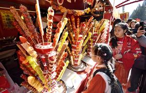 (260217) -- BEIJING, 17 febrero, 2026 (Xinhua) -- Personas compran Tanghulu, un aperitivo tradicional chino compuesto por bayas o frutas recubiertas de azúcar, en una feria de templo, en Beijing, capital de China, el 17 de febrero de 2026. Las ferias de templo se inauguraron aquí para celebrar la Fiesta de la Primavera y ofrecer a los visitantes bailes tradicionales, danzas del león y deliciosa comida. (Xinhua/Li Xin) (oa) (ah) (vf)