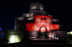 (260217) -- DOHA, 17 febrero, 2026 (Xinhua) -- Imagen del 16 de febrero de 2026 del Museo de Arte Islámico iluminado en celebración del Año Nuevo chino, en Doha, Qatar. (Xinhua/Nikku) (jg) (ra) (vf)