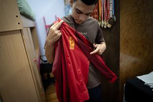 (260218) -- BUENOS AIRES, 18 febrero, 2026 (Xinhua) -- Imagen del 4 de febrero de 2026 de Marcos González, un joven de 14 años de edad y practicante de wushu, ordenando la ropa de entrenamiento en su habitación, en la ciudad de Buenos Aires, capital de Argentina. La milenaria cultura china y sus múltiples manifestaciones, como la Fiesta de la Primavera, el arte, la música, la danza y el deporte marcial, atrae y enamora a los jóvenes de Argentina, que se suman con entusiasmo, respeto y admiración a la práctica de distintas disciplinas, costumbres y celebraciones originarias del país asiático. (Xinhua/Martín Zabala) (mz) (ah) (ra) (ce)