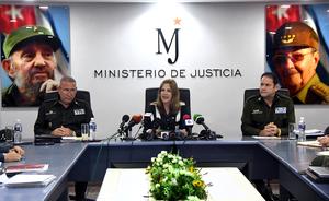 (260218) -- LA HABANA, 18 febrero, 2026 (Xinhua) -- Imagen del 17 de febrero de 2026 de la ministra de Justicia de Cuba, Rosabel Gamón Verde (c), participando en una conferencia de prensa, en La Habana, capital de Cuba. Gamón Verde aseguró el martes en conferencia de prensa que los resultados del país en la lucha contra las drogas demuestran que la isla no es el problema, sino parte de la solución. (Xinhua/Joaquín Hernández) (jh) (ah) (ra) (ce)