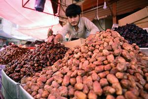 (260218) -- KARACHI, 18 febrero, 2026 (Xinhua) -- Un vendedor organiza dátiles mientras espera por clientes previo al Ramadán, en Karachi, Pakistán, el 18 de febrero de 2026. (Xinhua/Str) (ah) (ra) (ce)