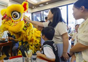 (260218) -- CIUDAD DE PANAMA, 18 febrero, 2026 (Xinhua) -- Imagen del 17 de febrero de 2026 de personas interactuando con un artista mientras presenta la danza del león durante la celebración del Año Nuevo chino, en la Ciudad de Panamá, capital de Panamá. Los rituales de la Fiesta de la Primavera son celebrados por los panameños desde hace décadas durante la tradicional bienvenida del Año Nuevo chino en el Templo Sociedad Religiosa y de Beneficencia Yan Wo del Barrio Chino, ubicado en la capital panameña. (Xinhua/Daniel González) (dg) (ah) (ra) (ce)