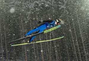 (260219) -- PREDAZZO, 19 febrero, 2026 (Xinhua) -- Ilkka Herola, de Finlandia, compite durante la ronda de prueba de salto de esquí del esprint por equipos de combinada nórdica en los Juegos Olímpicos de Invierno Milán-Cortina 2026, en Predazzo, Italia, el 19 de febrero de 2026. (Xinhua/Meng Yongmin) (rtg) (ra) (ce)