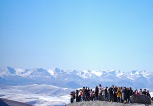 (260220) -- BEIJING, 20 febrero, 2026 (Xinhua) -- Turistas se divierten en una montaña nevada, en el distrito autónomo hui de Menyuan en la prefectura autónoma tibetana de Haibei, en la provincia de Qinghai, en el noroeste de China, el 20 de febrero de 2026. El Ministerio de Cultura y Turismo de China lanzó una campaña cultural y turística de un mes de duración previo a la Fiesta de la Primavera, que incluye una amplia gama de actividades y medidas promocionales para satisfacer mejor las necesidades de la población. (Xinhua/Zhang Long) (jg) (da) (ce)