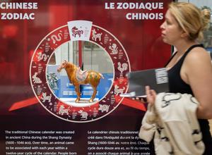 (260222) -- TORONTO, 22 febrero, 2026 (Xinhua) -- Imagen del 21 de febrero de 2026 de una visitante caminando frente a una pieza del Año del Caballo exhibida en la exposición Cajas del Zodiaco Chino, en el Museo Real de Ontario, en Toronto, Canadá. Con una rica colección de objetos y artefactos culturales relacionados con los caballos, esta exposición anual del zodiaco chino se inauguró el 10 de febrero y permanecerá abierta hasta el 31 de enero de 2027. (Xinhua/Zou Zheng) (rtg) (ah)