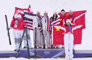 (260221) -- LIVIGNO, 21 febrero, 2026 (Xinhua) -- (De izq. a der.) Los medallistas de plata del equipo de Suiza, los medallistas de oro del equipo de Estados Unidos, y los medallistas de bronce del equipo de China, posan al término de la ceremonia de premiación de aerials por equipos mixtos de esquí acrobático en los Juegos Olímpicos de Invierno Milán-Cortina 2026, en Livigno, Italia, el 21 de febrero de 2026. (Xinhua/Hu Chao) (jg) (da)