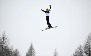 (260221) -- LIVIGNO, 21 febrero, 2026 (Xinhua) -- Li Tianma, de China, compite durante la final 2 de aerials por equipos mixtos de esquí acrobático en los Juegos Olímpicos de Invierno Milán-Cortina 2026, en Livigno, Italia, el 21 de febrero de 2026. (Xinhua/Zhang Hongxiang) (oa) (da)