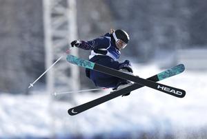 (260222) -- LIVIGNO, 22 febrero, 2026 (Xinhua) -- Zoe Atkin, de Reino Unido, compite durante la carrera 1 del halfpipe femenino de esquí acrobático en los Juegos Olímpicos de Invierno Milán-Cortina 2026, en Livigno, Italia, el 22 de febrero de 2026. (Xinhua/Wang Peng) (rtg) (ah)