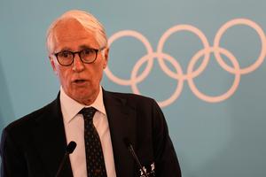 (260222) -- MILAN, 22 febrero, 2026 (Xinhua) -- Giovanni Malago, presidente del Comité Organizador de Milán-Cortina 2026, habla durante una sesión del Comité Olímpico Internacional, en los Juegos Olímpicos de Invierno Milán-Cortina 2026, en Milán, Italia, el 22 de febrero de 2026. (Xinhua/Luca Bruno/Pool) (rtg) (da)