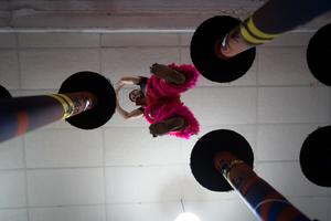 (260223) -- HAEDO, 23 febrero, 2026 (Xinhua) -- Imagen del 20 de febrero de 2026 de Gonzalo Jara, artista marcial e instructor de la danza del león de la Asociación Lung Chuan, participando en un entrenamiento de la danza del león sobre postes en una de las sedes de la asociación, en la localidad de Haedo, en la provincia de Buenos Aires, Argentina. La tradicional danza del dragón y del león, que recientemente abrió los festejos por el Año Nuevo chino en la ciudad de Buenos Aires, marcó este año un nuevo hito en Argentina al incorporar por primera vez la modalidad sobre postes, una variante en altura que exige mayor destreza, coordinación y preparación física. (Xinhua/Martín Zabala) (mz) (rtg) (ah) (ce)