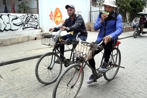 (260223) -- LA HABANA, 23 febrero, 2026 (Xinhua) -- Afiladores de tijeras circulan en bicicletas por una calle, en La Habana, capital de Cuba, el 23 de febrero de 2026. (Xinhua/Joaquín Hernández) (jh) (oa) (ah) (vf)