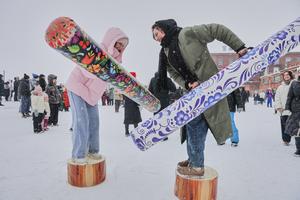 (260223) -- SAN PETERSBURGO, 23 febrero, 2026 (Xinhua) -- Imagen del 22 de febrero de 2026 de personas participando en un juego tradicional durante las celebraciones de Maslenitsa, en San Petersburgo, Rusia. Varios eventos se celebraron aquí en San Petersburgo el domingo para festejar el tradicional festival Maslenitsa. Durante el festival, las personas participaron en un amplio rango de actividades para despedir al frío invierno y darle la bienvenida a la primavera. (Xinhua/Irina Motina) (rtg) (ah) (vf)