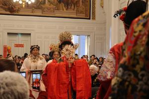 (260224) -- PARIS, 24 febrero, 2026 (Xinhua) -- Imagen del 14 de febrero de 2026 de la gala temática de Hanfu celebrada en el 13 distrito, en París, Francia. A medida que el Año Nuevo chino se celebra a miles de kilómetros de casa, sus ritmos ancestrales encuentran una nueva expresión en Francia. Desde robots que comparten protagonismo en los Campos Elíseos hasta jóvenes franceses que ocupan un lugar central en el Centro Cultural de China en París, el festival se ha convertido en un vibrante evento intercultural. (Xinhua/Zhang Baihui) (oa) (ah) (vf)