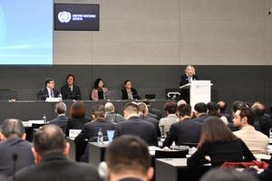 (260224) -- GINEBRA, 24 febrero, 2026 (Xinhua) -- Tatiana Valovaya, directora general de la Oficina de las Naciones Unidas en Ginebra, habla en un seminario sobre gobernanza global y la ceremonia de lanzamiento de la versión en inglés del primer volumen de "La gobernanza de China bajo el liderazgo de Xi Jinping" en el Palacio de las Naciones, en Ginebra, Suiza, el 24 de febrero de 2026. (Xinhua/Lian Yi) (jg) (ra) (ce)