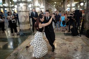 (260225) -- BUENOS AIRES, 25 febrero, 2026 (Xinhua) -- Imagen del 24 de febrero de 2026 de la pareja conformada por Lulú Qin (i) y Mariano Vázquez (d), brindando un espectáculo de "Tango de la Integración" durante una ceremonia de celebración del Año Nuevo chino en la "Confitería del Molino", en la ciudad de Buenos Aires, capital de Argentina. La Dirección de Diplomacia Parlamentaria de la Cámara de Diputados de Argentina y la Embajada de China en Argentina acogieron el martes una ceremonia para celebrar el Año Nuevo Lunar chino o Fiesta de la Primavera. (Xinhua/Martín Zabala) (mz) (jg) (da) (ce)