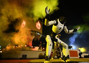 (260227) -- QINGDAO, 27 febrero, 2026 (Xinhua) -- Imagen del 26 de febrero de 2026 de un robot humanoide presentándose durante un espectáculo de acción en vivo con temática mítica en un área escénica, en Qingdao, en la provincia de Shandong, en el este de China. (Xinhua/Li Ziheng) (jg) (da) (ce)