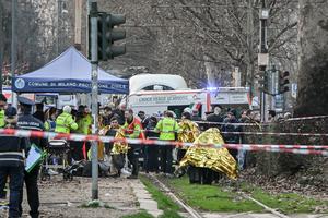 (260227) -- MILAN, 27 febrero, 2026 (Xinhua) -- Rescatistas trabajan en el sitio del descarrilamiento de un tranvía, en Milán, Italia, el 27 de febrero de 2026. Una persona murió y decenas resultaron heridas el viernes tras el descarrilamiento de un tranvía en Milán, norte de Italia, informaron medios locales. (Xinhua) (jg) (da) (vf)