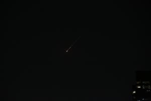 (260228) -- EAU, 28 febrero, 2026 (Xinhua) -- Las estelas de misiles en vuelo son vistas sobre Dubái, Emiratos Arabes Unidos (EAU), el 28 de febrero de 2026. EAU dijo que ha interceptado una nueva ola de misiles iraníes el sábado. (Xinhua/Wen Xinnian) (rtg) (da)