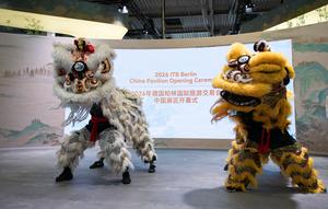 (260303) -- BERLIN, 3 marzo, 2026 (Xinhua) -- Artistas presentan la danza del león durante la Ceremonia de Inauguración del Pabellón de China en la feria de viajes ITB Berlín, en Berlín, Alemania, el 3 de marzo de 2026. La feria de viajes ITB Berlín de este año comenzó aquí el martes y durará hasta el 5 de marzo. Llevada a cabo por primera vez en 1966, el evento celebra este año su 60 aniversario. (Xinhua/Zhang Haofu) (jg) (ra) (vf)