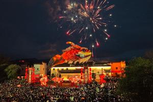 (260228) — TONGLU, 28 febrero, 2026 (Xinhua) — Artistas folclóricos realizan una danza del dragón en celebración del próximo Festival de las Linternas, en el distrito de Tonglu, en la provincia de Zhejiang, en el este de China, el 28 de febrero de 2026. El Festival de las Linternas cae en el decimoquinto día del primer mes del calendario tradicional chino, o el 3 de marzo este año. (Xinhua/Huang Zongzhi) (rtg) (da)