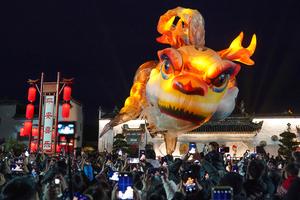 (260228) — HUANGSHAN, 28 febrero, 2026 (Xinhua) — Imagen del 27 de febrero de 2026 de personas observando un desfile de linternas de Pez Ao, en el poblado antiguo de Tangmo, en la ciudad de Huangshan, en la provincia de Anhui, en el este de China. El desfile de linternas se llevó a cabo el viernes en celebración del próximo Festival de las Linternas, presentando al Pez Ao, una criatura mítica china con cabeza de dragón y cuerpo de pez. (Xinhua/Du Yu) (rtg) (da)