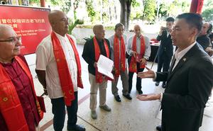 (260304) -- LA HABANA, 4 marzo, 2026 (Xinhua) -- Imagen del 3 de marzo de 2026 del embajador de China en Cuba, Hua Xin (d), conversando con un grupo de ex pilotos de combate y técnicos de vuelo durante una reunión con motivo del Festival de las Linternas en la Embajada de China en Cuba, en La Habana, capital de Cuba. Un grupo de cubanos, ex pilotos de combate y técnicos de vuelo formados en China hace más de 60 años, se reunieron el martes en la Embajada de China en Cuba con motivo del Festival de las Linternas. (Xinhua/Joaquín Hernández) (jh) (ah) (ra) (vf)
