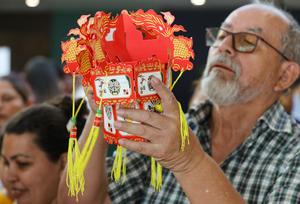 (260304) -- SAN SALVADOR, 4 marzo, 2026 (Xinhua) -- Imagen del 3 de marzo de 2026 de un salvadoreño armando una linterna china durante la celebración del Festival de las Linternas de China en la Biblioteca Nacional de El Salvador, en el departamento de San Salvador, El Salvador. Acertijos plasmados en linternas, demostraciones de caligrafía china y talleres para armar faroles formaron parte de las actividades con las que El Salvador celebró la víspera el Festival de las Linternas de China, una fiesta que simboliza un momento para cerrar ciclos, reforzar lazos familiares, la unidad cultural y la esperanza. (Xinhua/Alexander Peña) (ap) (jg) (da) (vf)