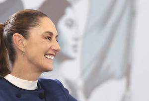 (260306) -- JALISCO, 6 marzo, 2026 (Xinhua) -- Imagen proveída por la Presidencia de México de la presidenta mexicana, Claudia Sheinbaum, sonriendo durante su conferencia de prensa matutina, en Zapopan, estado de Jalisco, México, el 6 de marzo de 2026. El Gobierno de México presentó el viernes la estrategia de seguridad que contempla el despliegue de más de 111.000 elementos y el uso de tecnología avanzada para garantizar la protección antes, durante y después de la Copa Mundial de la FIFA 2026, que se disputará en junio próximo en las ciudades de México, Monterrey y Guadalajara. (Xinhua/Presidencia de México) (rtg) (ra) (ce)