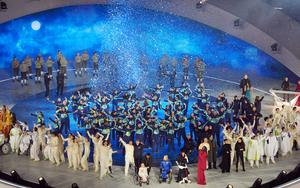 (260307) -- VERONA, 7 marzo, 2026 (Xinhua) -- Imagen del 6 de marzo de 2026 de artistas realizando una presentación durante la ceremonia de inauguración de los Juegos Paralímpicos de Invierno Milán-Cortina 2026 en la Arena de Verona, en Verona, Italia. (Xinhua/Cai Yang) (jg) (da)