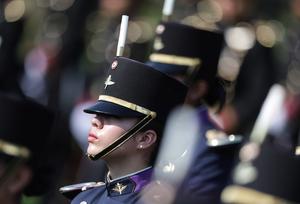 (260308) -- CIUDAD DE MEXICO, 8 marzo, 2026 (Xinhua) -- Una mujer del Ejército Mexicano participa en la ceremonia por el Día Internacional de la Mujer encabezada por la presidenta mexicana, Claudia Sheinbaum, en la Ciudad de México, capital de México, el 8 de marzo de 2026. (Xinhua/Francisco Cañedo) (fc) (ah) (da)