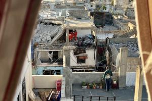 (260309) -- SIDON, 9 marzo, 2026 (Xinhua) -- Imagen tomada con un teléfono móvil el 8 de marzo de 2026 de rescatistas revisando la destrucción causada por los ataques aéreos israelíes en el campamento de refugiados palestinos Ain al-Hilweh, en Sidón, en el sur de Líbano. Israel lanzó dos ataques aéreos el domingo por la tarde contra el campamento de refugiados palestinos Ain al-Hilweh en la ciudad de Sidón, en el sur de Líbano, lo que causó víctimas, informaron medios locales. (Xinhua/Ali Hashisho) (ah) (ce)