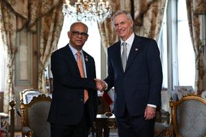 (260310) -- SANTIAGO, 10 marzo, 2026 (Xinhua) -- El presidente electo chileno, José Antonio Kast (d), recibe en audiencia al secretario general de la Organización de los Estados Americanos (OEA), Albert Ramdin (i), en Santiago, capital de Chile, el 10 de marzo de 2026. (Xinhua/Jorge Villegas) (jv) (jg) (ra) (ce)